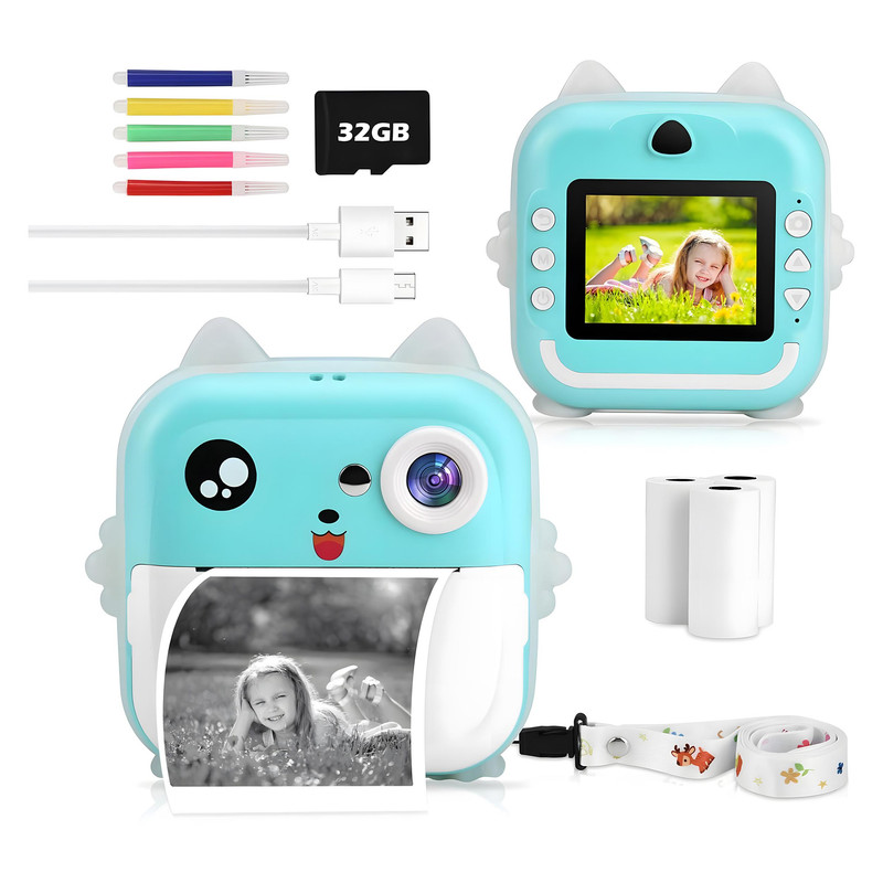 دوربین دیجیتال ناب سل مدل چاپ سریع شارژی موزیکال طرح گربه؛ با دقت موثر 48 مگاپیکسل، فیلمبرداری با رزولیشن FULL HD، نمایشگر ثابت، دارای گیم، قابلیت پخش موزیک به همراه یک عدد رول