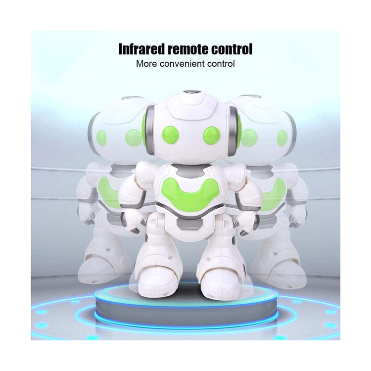بچهها میتوانید یک دوست خانگی داشته باشید. «ربات اسباببازی مدل Auto Demo» یک اسباببازی 24.5 سانتیمتری است که میتواند راه برود. این ربات دوستداشتنی چشمانی درخشان دارد و کودکان بالای شش سال قادر هستند توسط ریموت کنترل 9سانتیمتریاش آن را هدایت کنند. فقط باید قبل از بازی، چهار باتری قلمی درون آن قرار دهید و سپس توسط ریموت کنترل کوچکش آن را هدایت کنید. روی ریموت کنترل آن چهار دکمه برای هدایت آن به راست و چپ و بالا و پایین وجود دارد. این دوست سفیدرنگ شما میتواند دستان و سرش را به طرفین بچرخاند. علاوهبراین با توجه به چرخهای موجود در قسمت پاهایش میتواند راه برود. همچنین دارای یک دکمهی دمو روی ریموت کنترل است که میتوان با فشردن دکمهی دمو، تمامی قابلیتهایش را بهصورت یکجا دید. این ربات موزیکال دارای نور و صدا بوده و هدیهای بسیار مناسب برای کودکانی است که عاشق دنیای رباتها هستند.