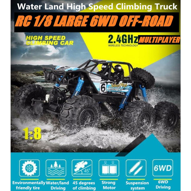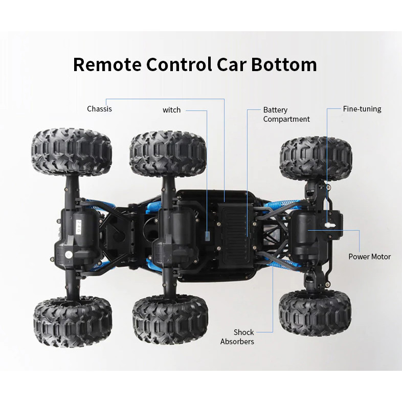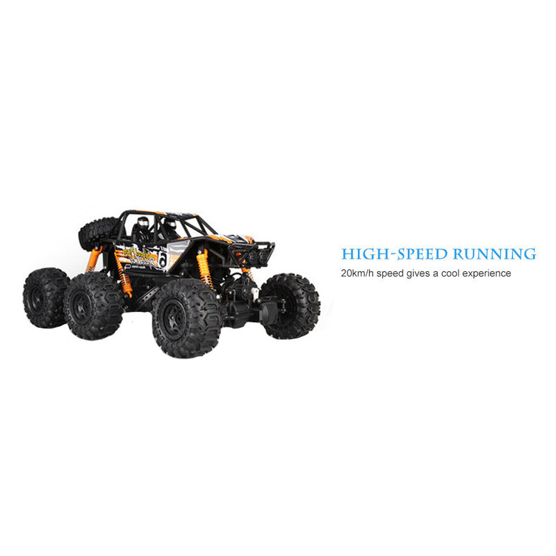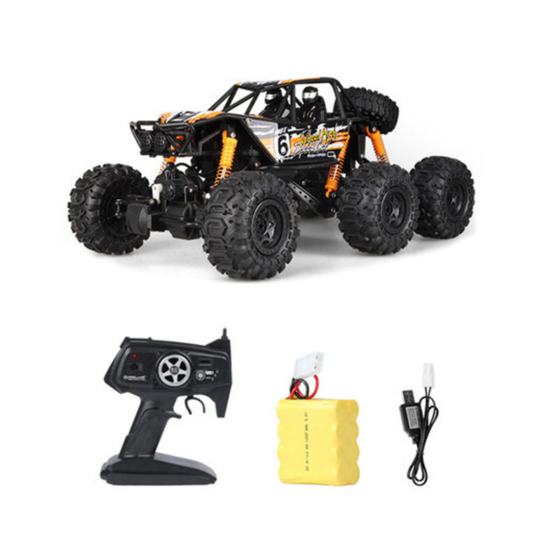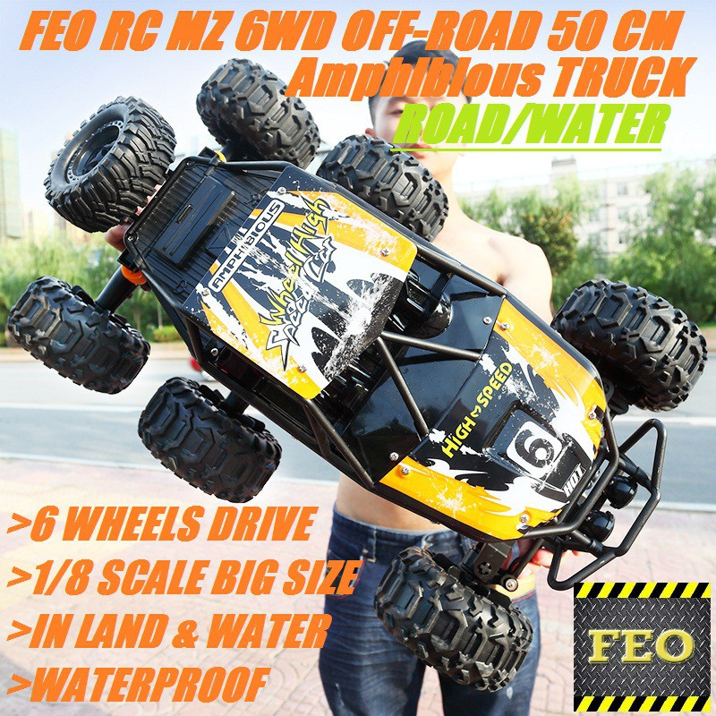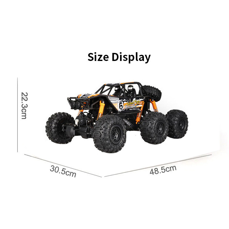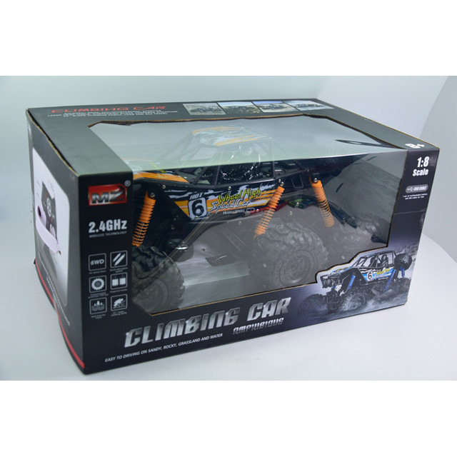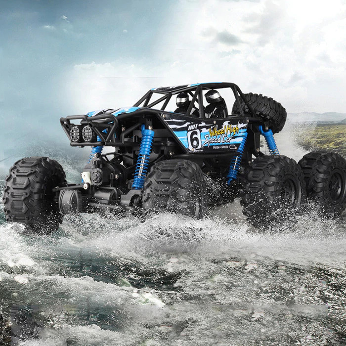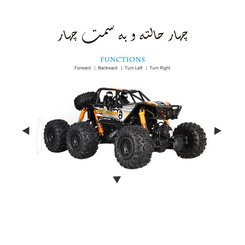 ماشین کنترلی شش چرخ غول پیکر MZ-YY2001 که از محصولات عالی در تیپ ماشین الکتریکی آفرود ( ماشین شارژی ) است که با ویژگی کاملا waterproof ( ضد آب ) لحضات و بازی جذابی را برای شما به ایجاد می کند .ماشین کنترلی شش چرخ غول پیکر MZ-YY2001 که از محصولات عالی در تیپ ماشین الکتریکی آفرود ( ماشین شارژی ) است که با ویژگی کاملا waterproof ( ضد آب ) لحضات و بازی جذابی را برای شما به ایجاد می کند . باتری این ماشین الکتریکی آفرود 9.6 ولت با ظرفیت 1000 میلی آمپر لیتیوم پلیمر می باشد و با قیمتی استثنایی گزینه ای عالی برای هدیه می باشد .جنس بدنه ماشین کنترلی شش چرخ MZ-YY2001 از پلاستیک فشرده PVC است . این ماشین الکتریکی آفرود با سه دیفرانسیلی ( 6WD ) که دارد به شما لذت دو چندانی از بازی را می دهد . همچنین ماشین کنترلی شش چرخ MZ-YY2001 دارای دو سیستم تعلیق جداگانه میباشد .سیستم فنربندی هر چهار چرخ باعث انعطاف در حرکت این ماشین الکتریکی آفرود شده است و شما میتواند در سطوح مختلف از قدرت بالای آفرود این ماشین استفاده کنید و نهایت هیجان رو تجربه کنید . شما میتوانید در کنار دریا ، جنگل ، شن و ماسه و همچنین بر روی آسفالت و خاک از این ماشین شارژی آفرود مدل MZ-YY2001 استفاده کنید .این ماشین یک ماشین شارژی حرفه ای در کلاس آفرود و صخره نوردی به حساب می آید .ماشین کنترلی آفرود مدل MZ-YY2001 با داشتن باطری 9.6 ولت 1000 میلی آمپر لیتیوم پلیمر و USB شارژ بین مدت 2 الی 3 ساعت شارژ میشود و به شما 20 الی 30 دقیقه زمان بازی و لذت بردن از درایو آفرود این ماشین شارژی حرفه ای می دهد . یک رادیو کنترل ساده اما قدرتمند با همان طراحی همیشگی ارگونومیک با فرکانس 2.4 گیگاهرتز برای این محصول در نظر گرفته شده است. رادیو کنترل دارای برد 150 متر بوده و کلید های تریم اهرم جلو و عقب و دسته فرمان روی آن قرار گرفته . این رادیو کنترل دارای کلیدهایی با دقت بالا بوده که به شما این امکان را می دهد تا به دقیق ترین شکل با سرعت و جهت دلخواه ماشین را هدایت کنید.و همچنین این ماشین پر قدرت میتواند با شیب 48 درجه حرکت کند.