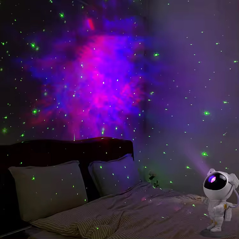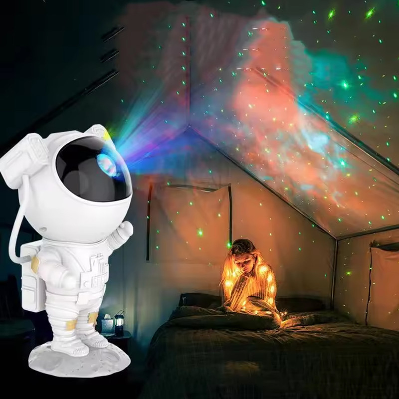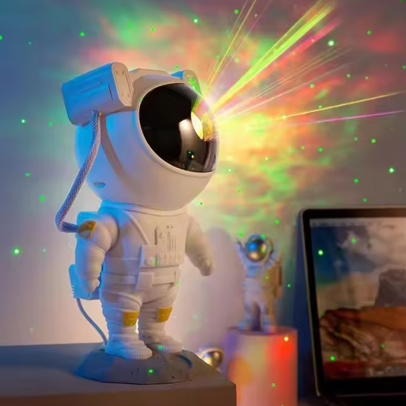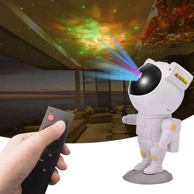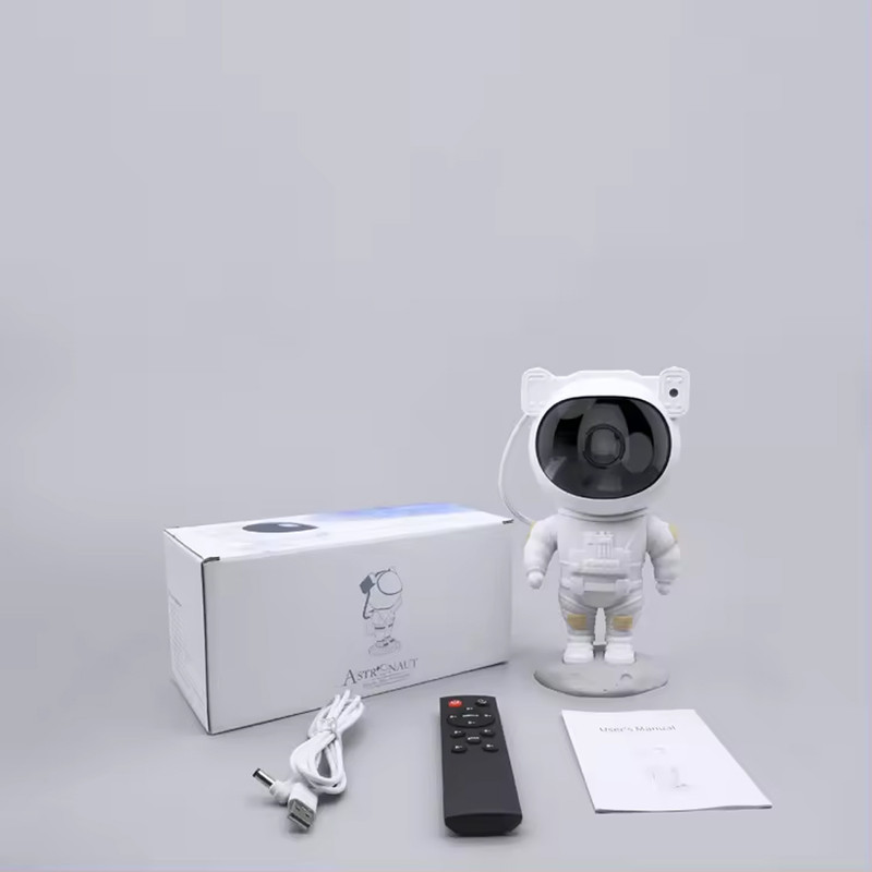 چراغ خواب فضانورد مدل ASTRONAUT محصولی بسیار جذاب برای اتاق خواب و دفتر کار شما است. این چراغ سحابی های فلکی را به صورت متحرک در رنگ های مختلف به شما نمایش میدهد از ویژگی های اصلی این چراغ میتوان به چرخش 360 درجه سر آن اشاره کرد که به شما این امکان را میدهد تا نور چراغ را به هر سمتی که میخوایید تنظیم نمایید. این چراغ خواب به برق شهری متصل بوده و دارای یک پایه برای ثابت نگه داشتن چراغ روی سطوح است همچنین این چراغ دارای ریموت هوشمند برای تنظیمات نور چراغ است.