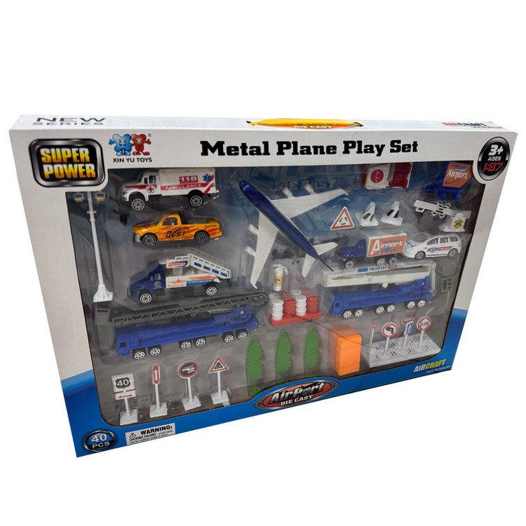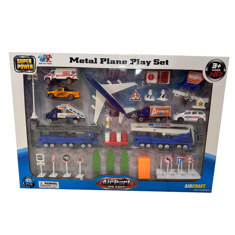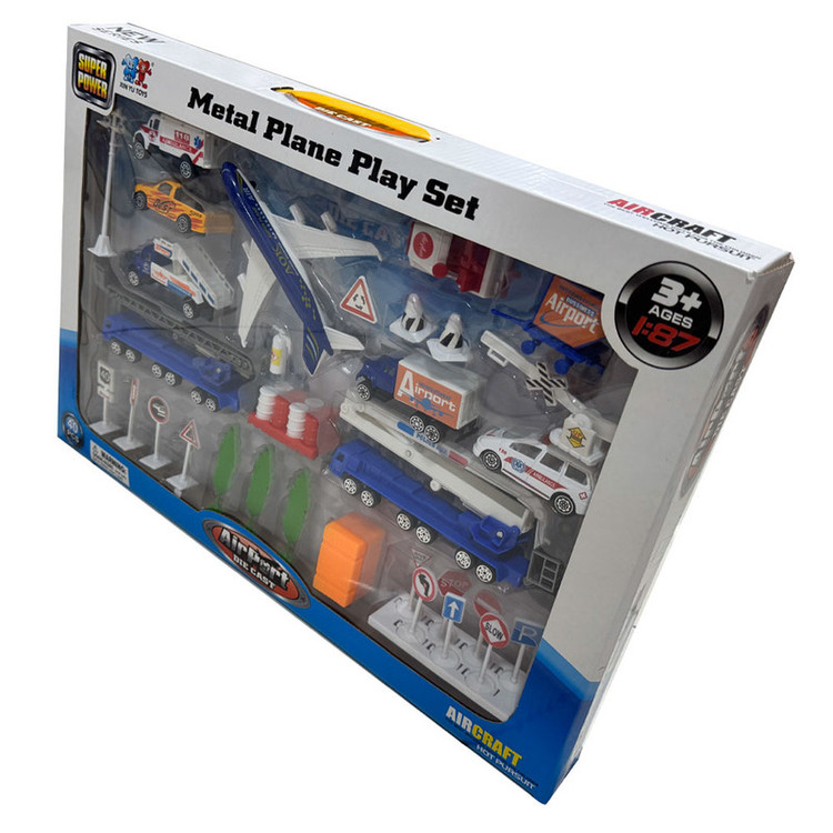 ست فلزی فرودگاه با ماشین ها و تهجیزات بصورت فلزی بوده و جهت آشنایی کودکان با لوازم فرودگاه می باشد
