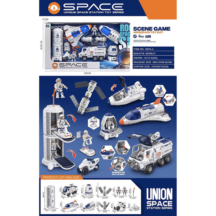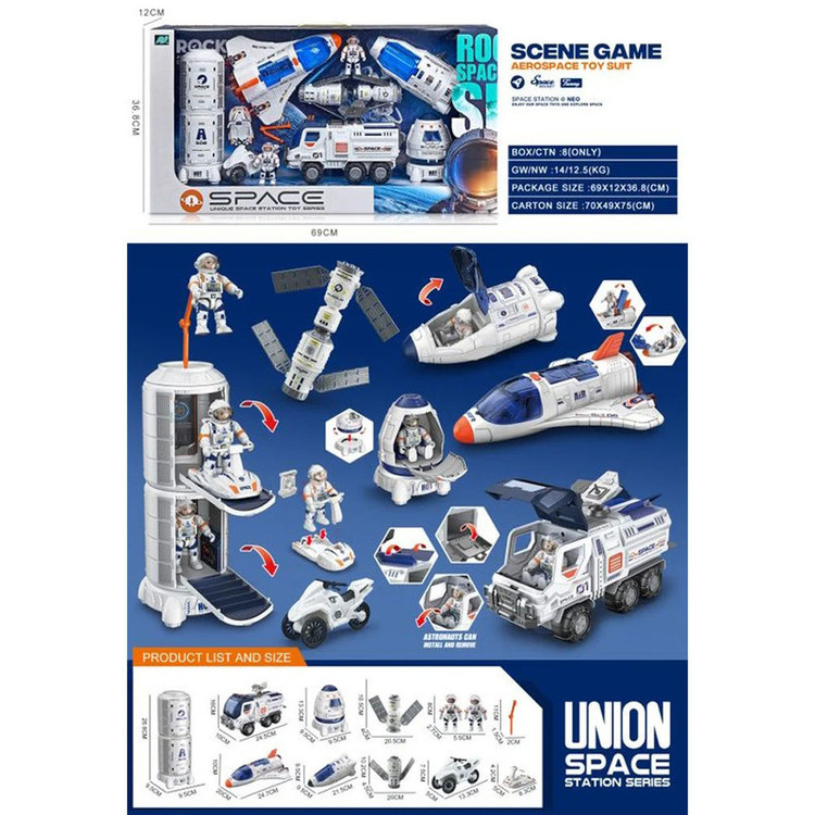 اقلام همراه: شاتل فضایی ---فضاپیما- کامیون فضایی- دوماهواره - هواپیمای فضایی- اسکوتر - 2 عدد فضانورد -موتور فضایی وغیره...