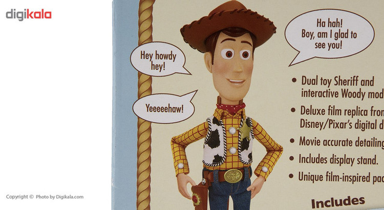 عروسک «Woody Sheriff» را برند معتبر «دیزنی» برای کودکان بالای سه سال طراحی کرده است. این شخصیت دوستداشتنی آمده تا مهمان اتاقتان شود و از تنهایی نجات پیدا کند. با این عروسک دوستداشتنی بازی کنید تا به باقی اسباببازیهایتان حسودی نکند. میتوانید به ماجراجوییهای وودی کلانتر، باز لایتر فضایی را ملحق کنید تا در هیچ شرایطی احساس تنهایی نکند. عروسک وودی را میتوانید توسط پایهی ستارهای شکلش بر روی زمین ثابت نگه داشته و آن ا بر روی میزکار یا دکوراسیون اتاقتان قرار دهید. عروسک وودی براساس تن صدای شما هنگام صحبتکردن، واکنش نشان میدهد که این موضوع برای کودکان جذاب است.با هربار کشیدن ریسمان پشت Woody، عروسک با صدای کاراکتر اصلی، بیش از 50 جمله از جملات داستان اسباببازیها را تکرار میکند. این شخصیت دوستداشتنی ارتفاعی 31 سانتیمتری داشته و دارای شناسنامه و گواهی اصالت محصولات است.