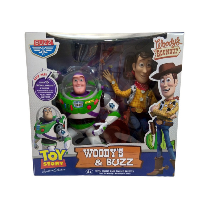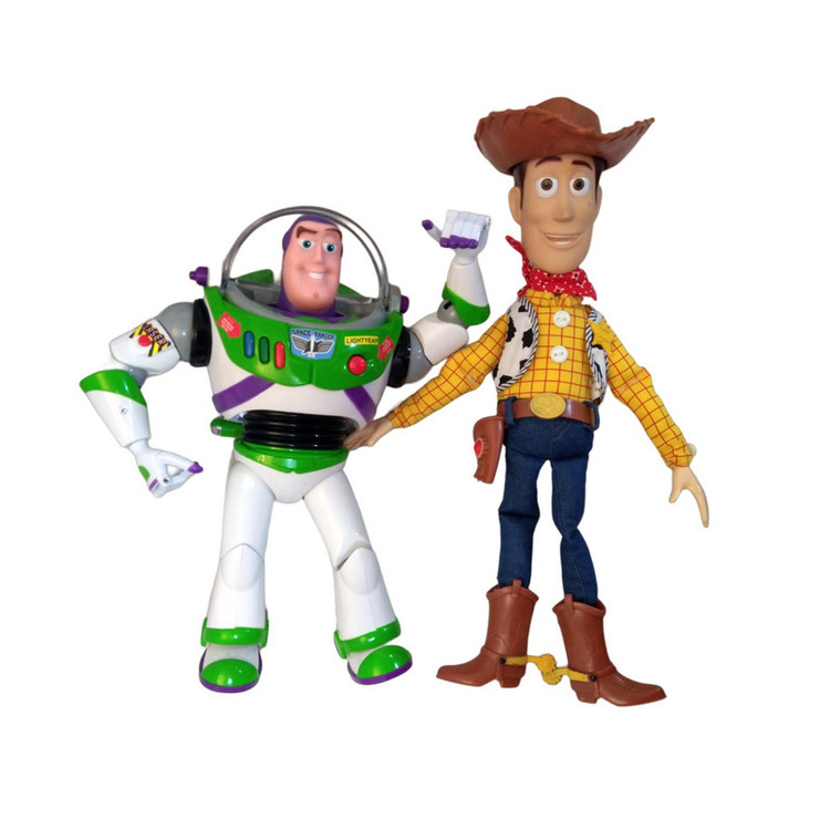 وودی به ارتفاع 37 سانتیمتر دارای حلقه در پشت که با هر بار کشیدن آن جمله ای از کلانتر وودی پخش میشود . باز لایتر به ارتفاع 31 دارای قابلیت بیان 15 کلمه و جمله . بالها باز و بسته میشوند . این مجموعه دارای کیفیت عالی بوده و برای هر سن و سالی جذاب میباشد .