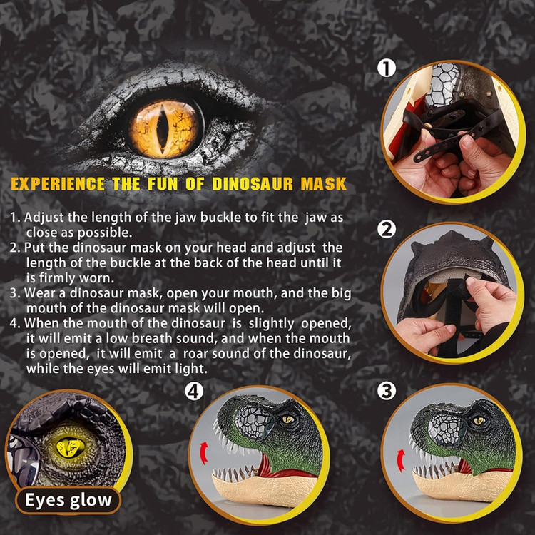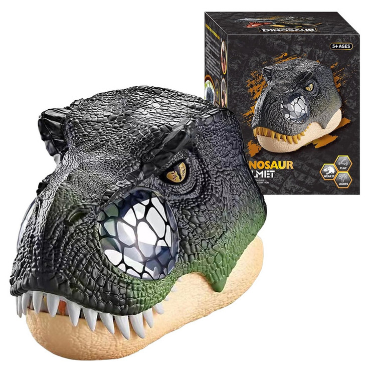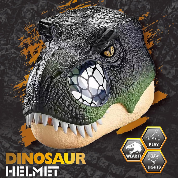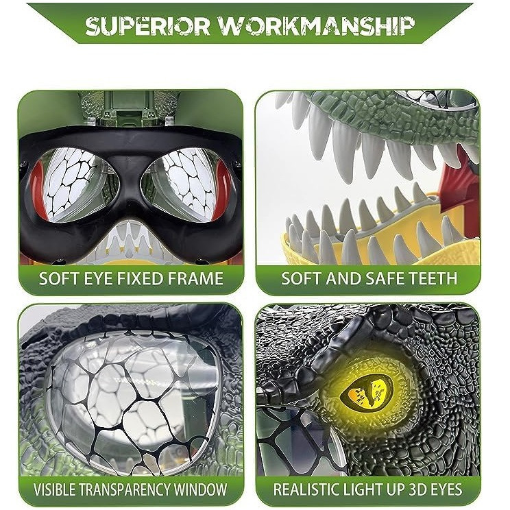 سایر توضیحات: سر پوش تیرانوسوروس رکس دارای بند قابل تنظیم برای استفاده کودکان و بزرگسالان . در هنگام باز کردن دهان صدای غرش تیرکس فعال شده و چشمها روشن میشوند . دارای کیفیت عالی و جذاب برای هر گروه سنی .
