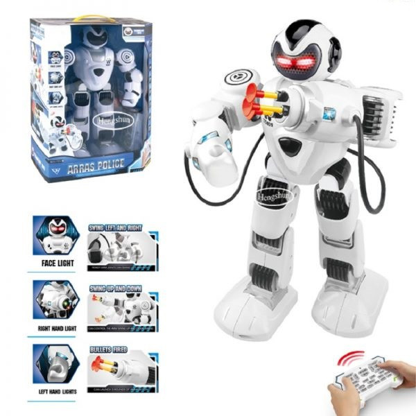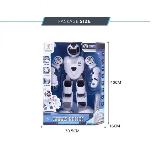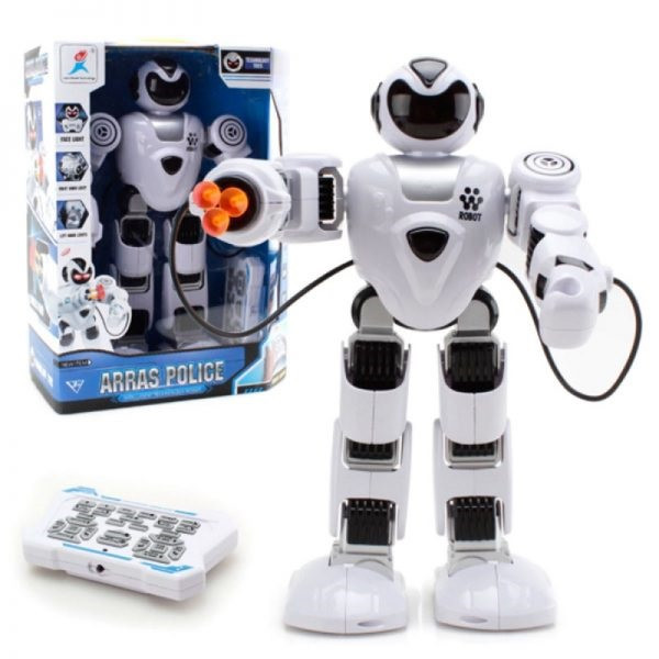 ربات ARRAS POLICE قابلیت حرکت در جهت های چپ، راست، جلو و عقب را دارد. این ربات می تواند با 5 اهنگ مختلف برقصد. از دیگر ویژگی های آن می توان به پخش 5 موزیک زیبای دیگر اشاره کرد.این جنگجو می تواند داستان هم بگوید. در حافظه ربات 7 داستان مختلف وجود دارد که با استفاده از دکمه مخصوص روی کنترلر می توان آن ها را پخش کرد. این ربات به دو روش معمولی و با ارایش تهاجمی قابلیت حرکت دارد که برای هر دو حالت کلید های مخصوص بر روی کنترل آن تعبیه شده است. قابلیت برنامه گرفتن از دیگر ویژگی های این جنگجو است. چراغ های LED به کار رفته در هنگام بازی به جذابیت این ربات می افزاید. با توجه مبارزه طلبی ربات، امکان پرتاب تیر نیز وجود دارد. با استفاده از دکمه های مخصوص روی کنترلر این ربات می تواند به حالت نبرد و جنگ در آمده و تیر ها را شلیک کند. دست ها و بازوهای ربات را نیز می توان در جهت های مختلف با استفاده از کنترل آن تنظیم کرد. ربات با استفاده از کابل usb شارژ می شود و ریموت کنترل نیاز به باتری قلمی دارد. به دلیل دارا بودن قطعات کوچک برای کودکان زیر سه سال مناسب نیست.