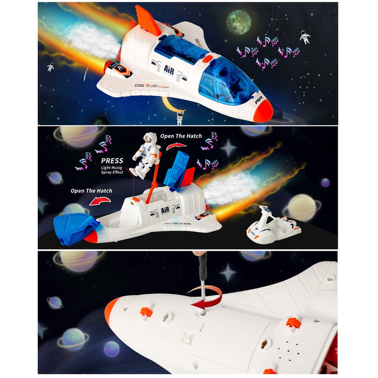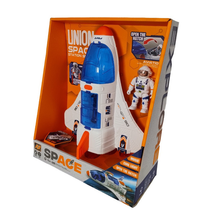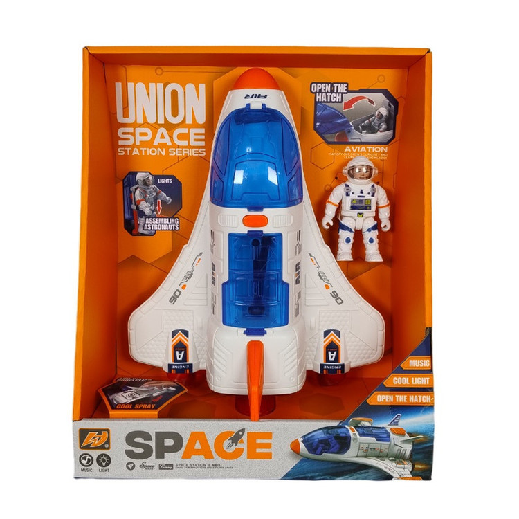 شاتل فضایی دودزا به طول 25 سانتیمتر . 3 عدد باتری قلمی مورد نیاز است که در بسته بندی موجود نیست .