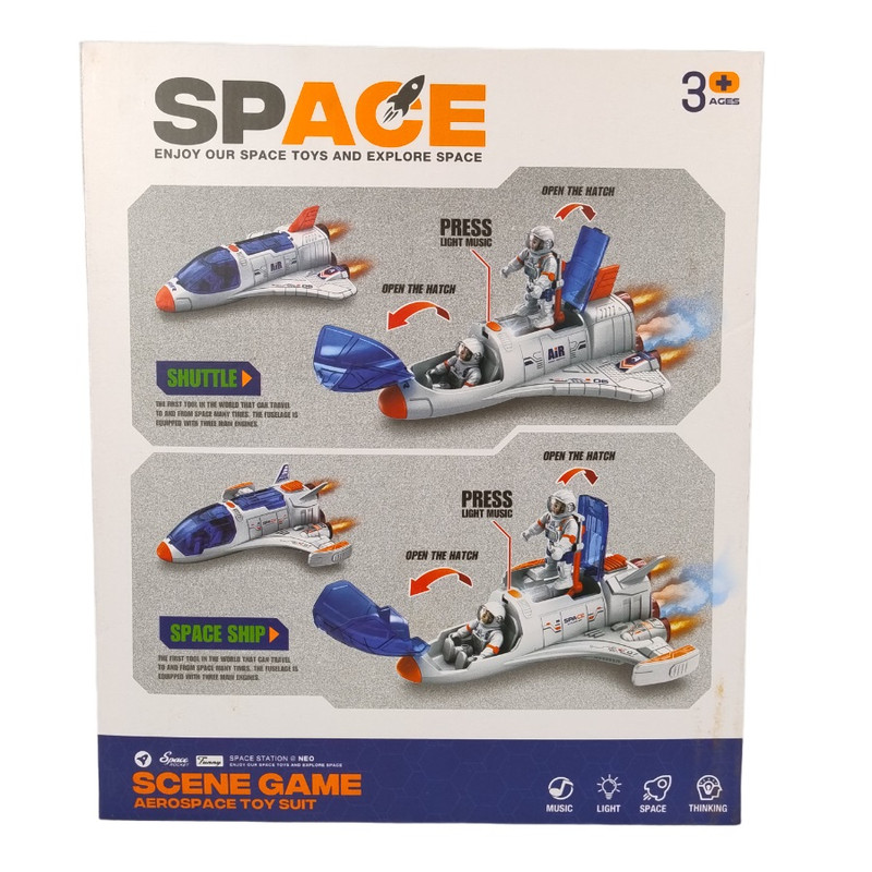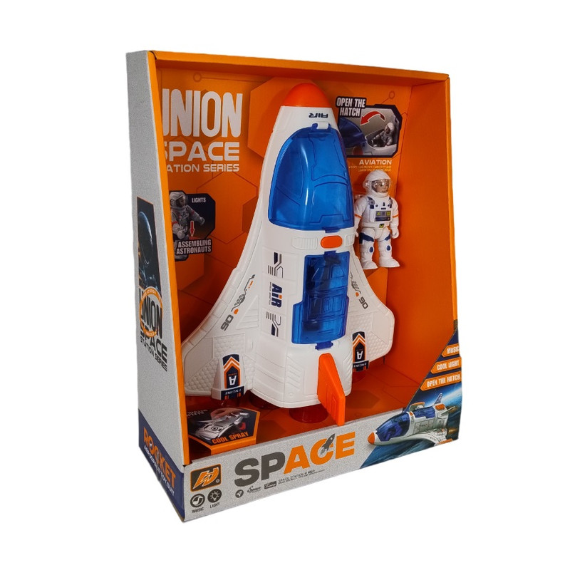 شاتل فضایی دودزا به طول 25 سانتیمتر . 3 عدد باتری قلمی مورد نیاز است که در بسته بندی موجود نیست .