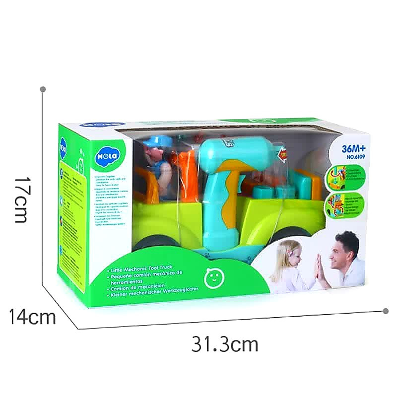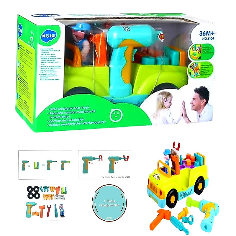 ماشين جعبه ابزار هولي تويز، یک اسباب بازی برای سرگرمی و البته آموزش کودک است. همراه این اسباب بازی آچار، پیچ گوشتی، آچار، پیچ و پیچ گوشتی برقی است. این پیچ گوشتی برقی برای روشن شدن نیاز به باتری دارد.