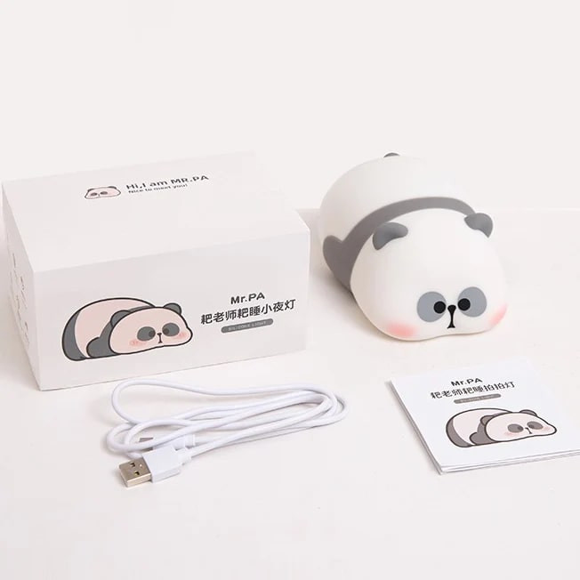 چراغ خواب پاندای خسته مناسب برای کودکان و کادو دادن به دیگران ، قابلیت شارژ ، دارای کابل شارژر ، جنس سیلیکونی و نرم