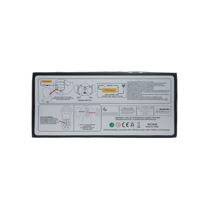 دستهبندی: رباتوزن: 900 گرمنوع ربات: حیواناتنوع حرکت: راه رفتنابعاد کالا: 41x35x16 سانتی متر میلیلیتر