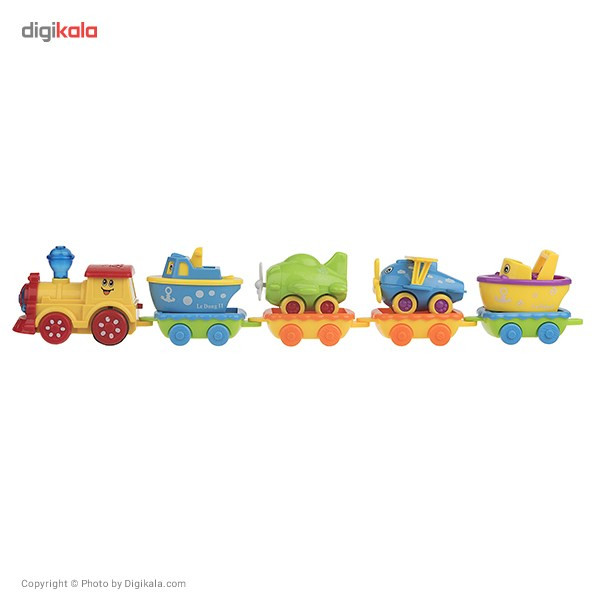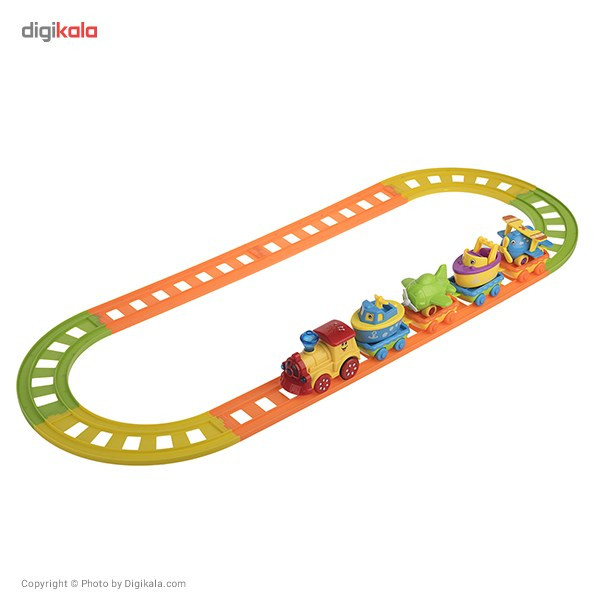 این قطار اسباببازی رنگی دارای ریلهای متنوع، منحنی و مستقیم است که بهصورت کشویی و بهراحتی به یکدیگر متصل میشوند. و میتوان آنها را به مدلهای مختلف قرارداد. مثلاً اگر 4 ریل پلاستیکی را به یکدیگر متصل کنید یک مسیر دایرهای شکل به قطر 41 سانتیمتر خواهید داشت. همینطور اگر 4 ریل مستقیم و 4 ریل منحنی را استفاده کنیم یک مسیر مربعی شکل به قطر 43 سانتیمتر داریم. اگر مسیر طولانیتری را میخواهید امتحان کنید میتوانید 4 ریل پلاستیکی سبزرنگ و 4 ریل نارنجیرنگ را به یکدیگر به شکل مستطیل وصل کرده و یک مسیر طولانی 94.5 سانتیمتری را بسازید. میتوان با استفاده از 4 ریل پلاستیکی نارنجیرنگ و 2 ریل سبزرنگ یک مسیر بیضی به طول 62 سانتیمتر ساخت. کودک در حین بازی با این اسباببازی رنگین، علاوه بر شناخت رنگهای مختلف، با شکلهای هندسی دایره، مربع و مستطیل و بیضی نیز آشنا شده و بهتدریج ماهیچههای دستش نیز قویترمی شود. از طرفی دیگر در حین بازی با وسایل حملونقل گوناگون هم آشنا میشود. واگنهای این قطار وسایل مختلفی همچون قایق، هواپیمای مسافربری و تکسرنشین و یک کشتی مسافربری است که بهراحتی به یکدیگر متصل میشوند.