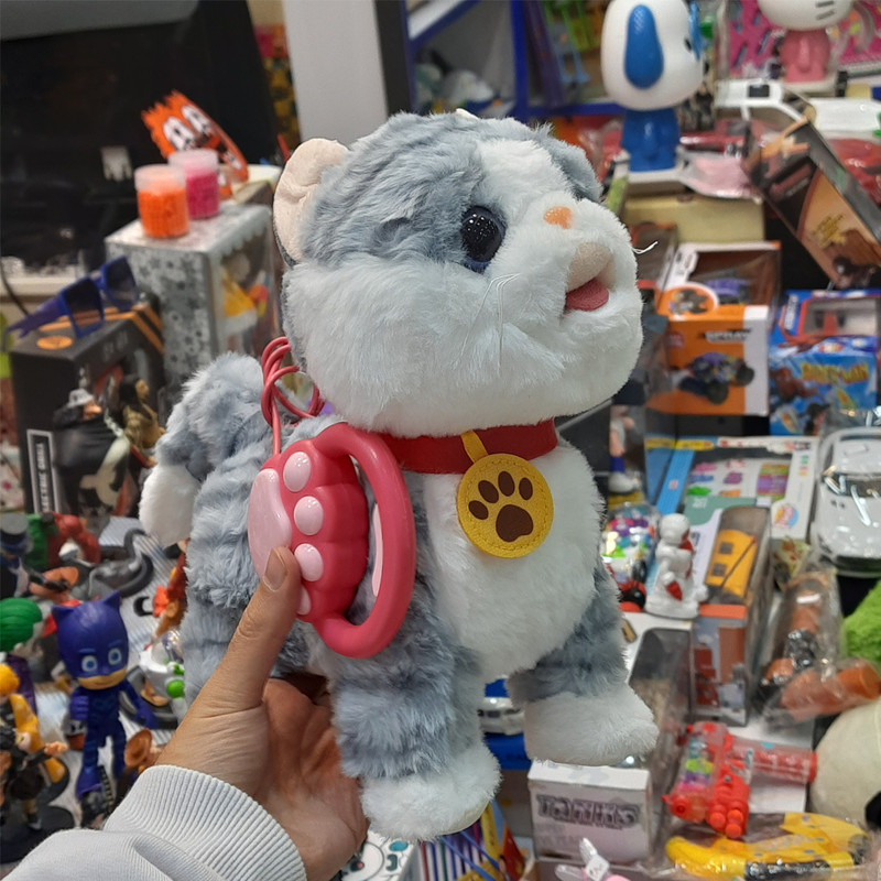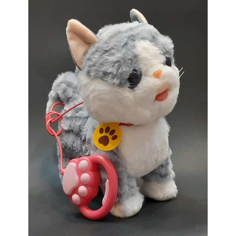 عروسک گربه سخنگو حرکتی یکی از محصولات محبوب برای جذب و سرگرم کردن کودکان محسوب میشود این محصول با ایجاد حرکات نمایشی مثل زبون در اوردن حرکت کردن موزیک خواندن و تنوع موزیکی و ضبط و تکرار صدای شما میتواند کودکان شمارا سرگرم کند و حس یه گربه واقعی را به شما بدهد این محصول یک قلاده هم داره که شما میتونید با گرفتن قلاده به حرکت در بیارید