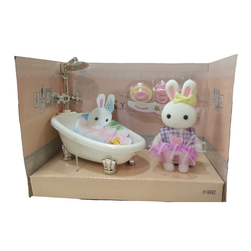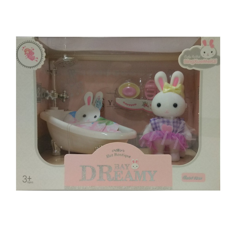 مجموعه خرگوش و وان شامل : خرگوش به طول 9 سانتیمتر ، وان ، صابون ، شامپو و ..
